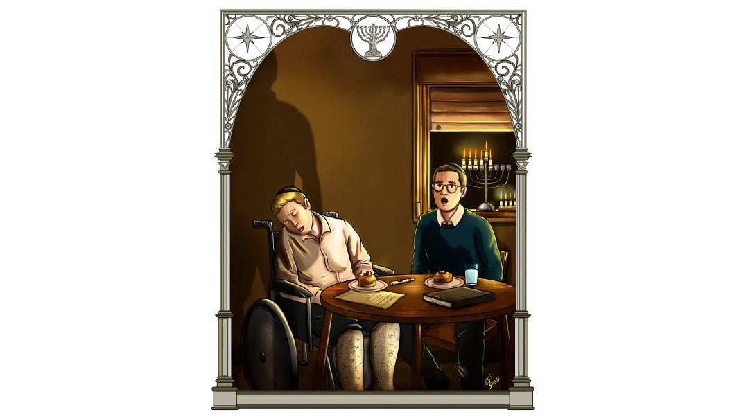 “So, Rosen, on nights one through four there’s progression, but the fifth night”—he gave his cast a little tap—“the fifth night of Chanukah is the tipping point.”