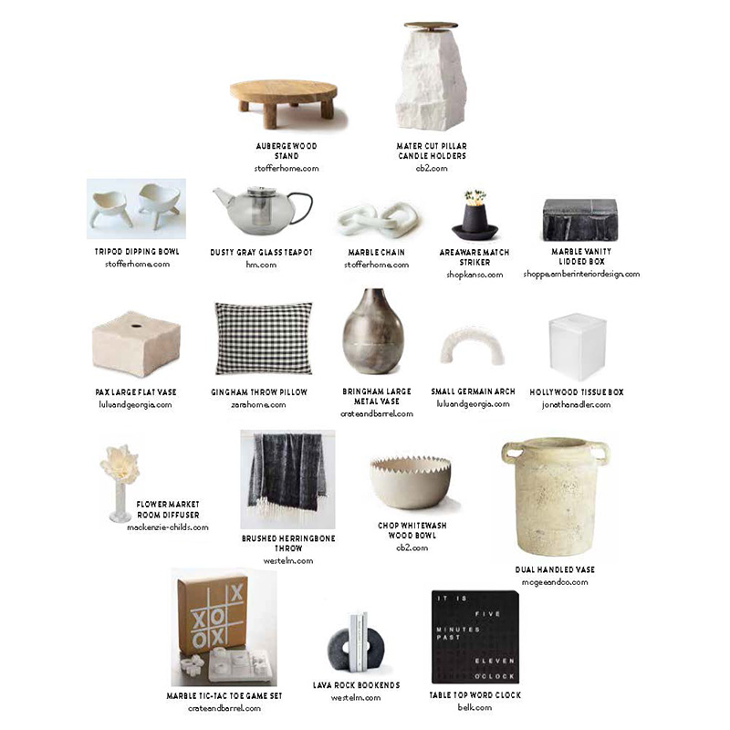 pcycling, elevating, or renewing a space is not often as big of a step as you might think. Sometimes adding current and impactful little details have a way of injecting newness and excitement into a space. Here are some of my favorite black and white accent pieces, all priced $50 or below.