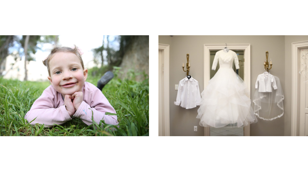 It’s easy to figure out the subject of these pictures: in the first, it’s an adorable little girl — my daughter, Elisheva — and the second is a bride’s wedding gown. The subjects have nothing in common. However, they do share a very similar composition. Can you spot it?