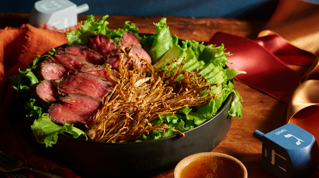 Crispy Enoki Mushroom-Steak Salad