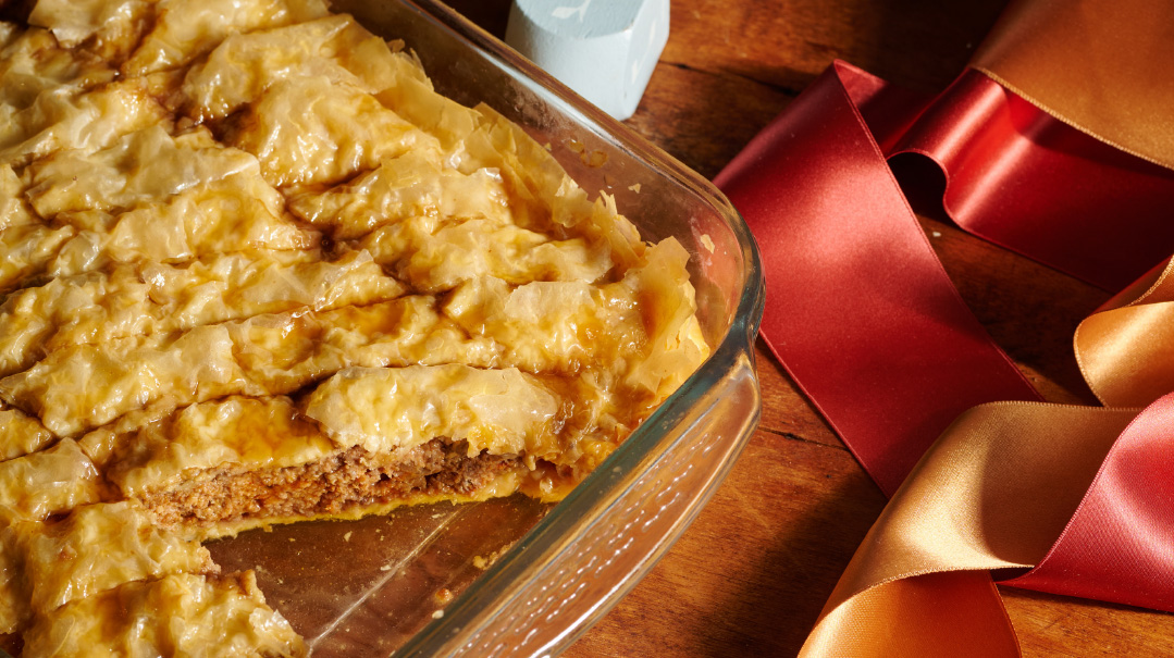 Tip: The baklava can be made in advance and reheated on convection (if possible) at 300°F (150°C). It won’t have the same crisp as straight from the oven, but it will still be very good.