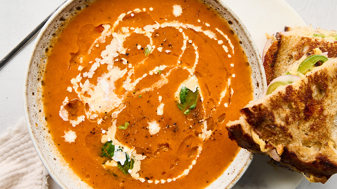 Roasted Tomato Soup with Sourdough Grilled Cheese