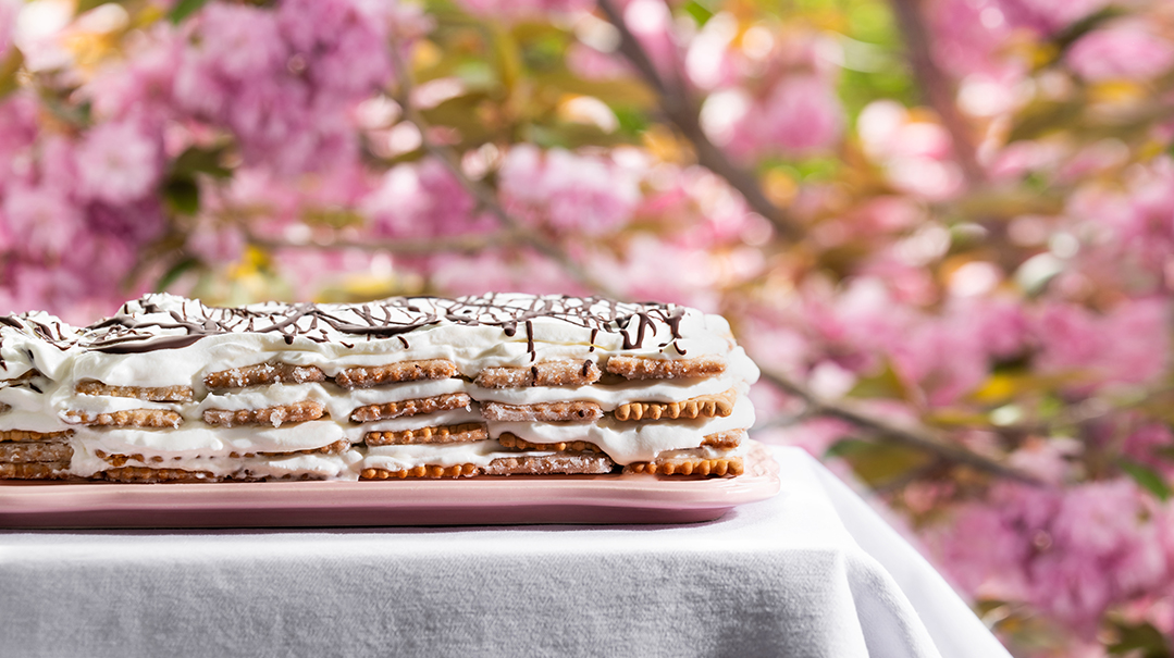 Every single Israeli child will tell you that all the classic cheesecakes may very well be delicious, but there is nothing quite as wonderful as the simple, no-bake, tea-biscuit-layered cheesecake they make with their morahs in school from the time they are mere toddlers. Yes, it is easy to attribute such fondness of this dish to nostalgia. Until you taste it. It is tangy, sweet, cold, and creamy and positively delicious.