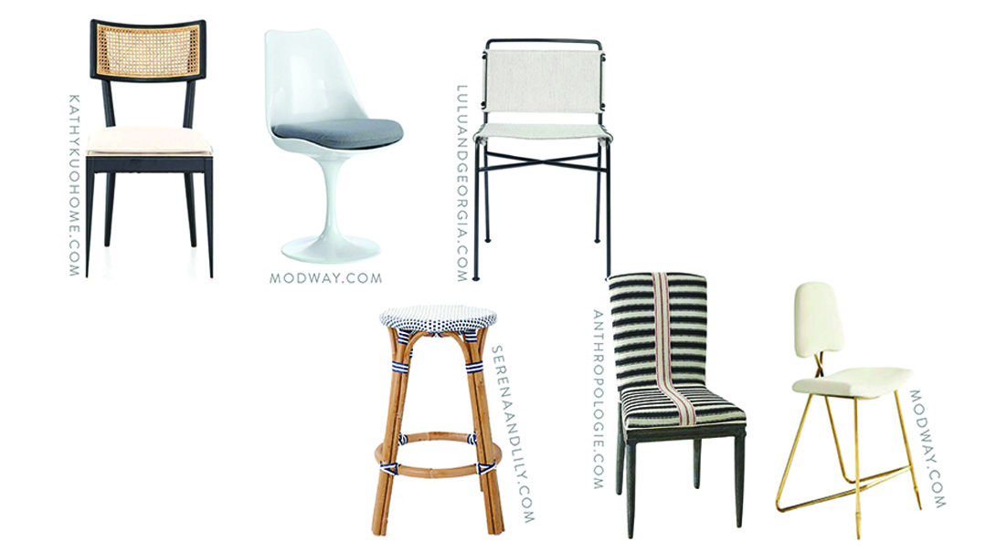 Here are some nice options whose style diversity you can’t go wrong with. Look for performance fabrics, darker colors, or textured fabric weaves so you don’t have to worry about the spills; or aim for a leather, plastic, or wood finish, which are the easiest to wipe.