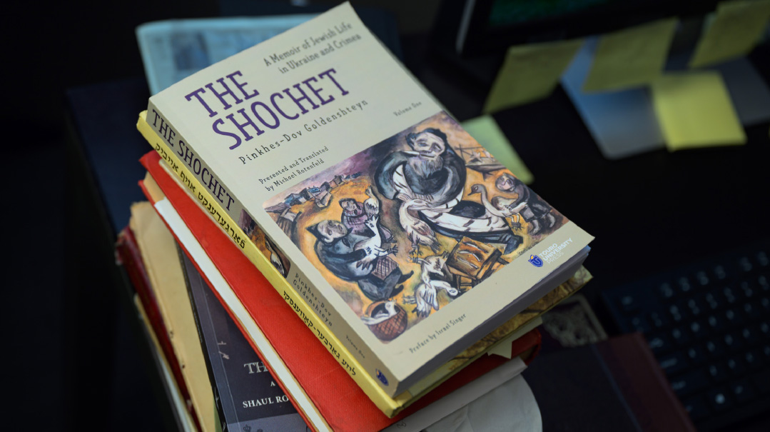 “Most autobiographies during that time were written by maskilim,” explains Mr. Rotenfeld, whom we find half-hidden behind stacks of books at his desk at Touro University’s Cross River campus on 43rd Street in Manhattan, where he serves as associate director of libraries. “The maskilim would begin by talking about their impoverished, benighted childhoods in the shtetls and show how they rose to greater enlightenment and prosperity as they abandoned their origins. The Shochet is perhaps the only autobiography written by a frum Yid who stayed firm in his Yiddishkeit and related daily life in detail.”