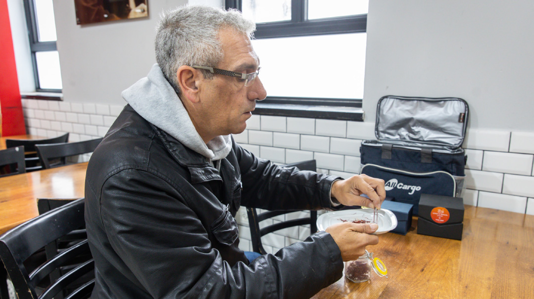 This work requires special skill. The threads can’t be damaged while separating them from the yellow base. In Iran, Moshe relates, the yellow base is mixed with the red thread and is colored with red dye, and as such, Iranian saffron is considered cheaper. “We go with the pure saffron and produce only from the red thread. That’s why its price is so high.”