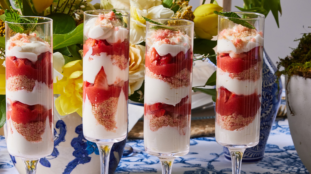 These cups may be refrigerated up to a day or two ahead of time, but add the fresh strawberries and additional crumb topping right before serving.