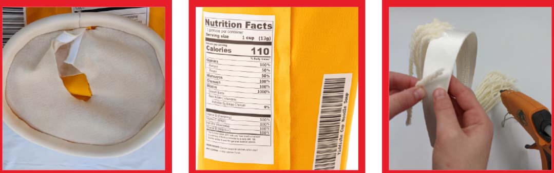 3. Measure a strip of the U-shaped foam to be the same width as the felt. Hot glue the top of the felt to the inside of the U. It will form the round top of your soup cup.