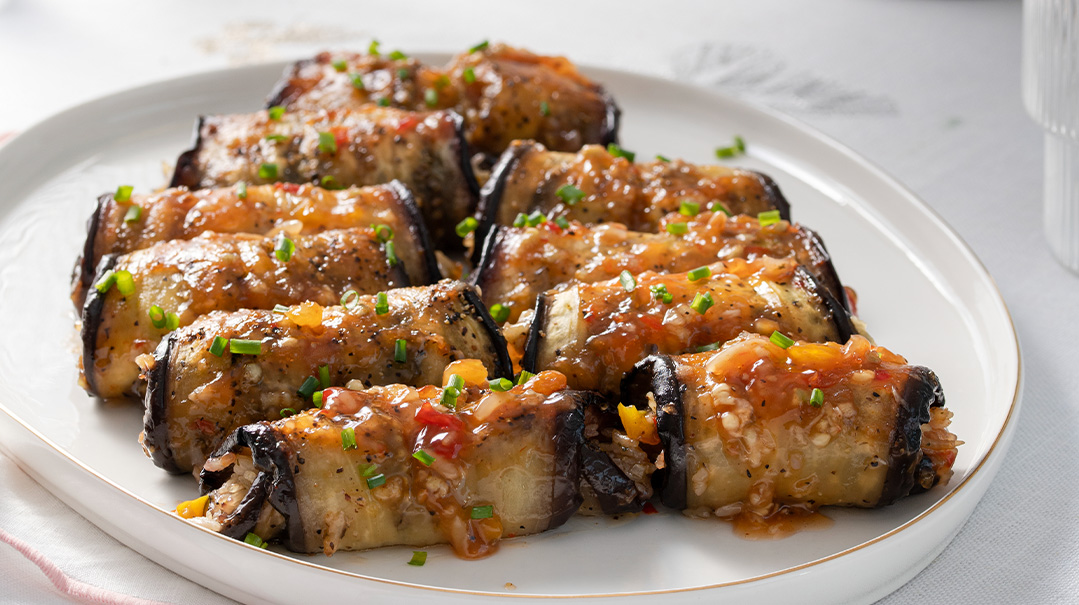 Sweet-and-Sour Glazed Eggplant Rollups