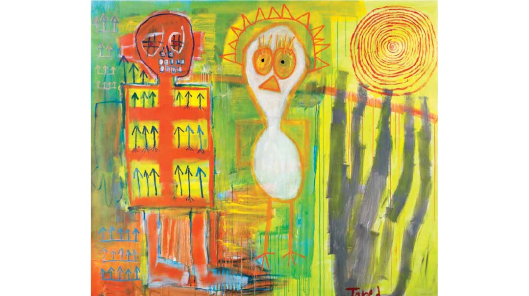 “In the book, through my paintings and my poems, I share my experiences of finding G-d and gaining the courage to transform my life,” Jared says, emphasizing that it’s not just a collection of modern art, but what he calls, “a public mirror to my soul. I grew up barely knowing I was Jewish, but despite the money and status I had, I wasn’t happy. In 1998 I found Hashem, walked away from that life, got married, moved to Jerusalem and was blessed with a beautiful family. But it’s taken me 23 years to get up the nerve to share my story. The book is a confrontation with my identity. It’s the story of my life, of my teshuvah, of my coming clean.”
