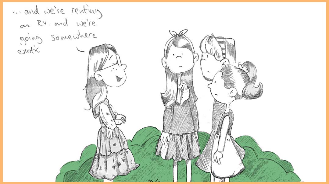 They arrive. At the park. Which is a three-minute walk from your house, but come on, the RV is the experience, and the point is that it’s a family trip, and — how did that go again? It doesn’t matter where you’re going, right?