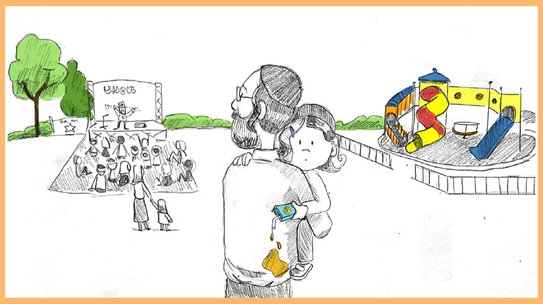 Right. It really doesn’t matter. Your husband and toddler even get to wave goodbye to Uncle Moishy, who’d just finished his performance, right upon their arrival. They also get to practice saying “Gam zu l’tova” and “Thank You, Hashem” and “Maybe next year, it obviously wasn’t bashert,” after waiting on line for one and a half hours and having the ride operator tell them the ride is closed when it’s finally their turn.