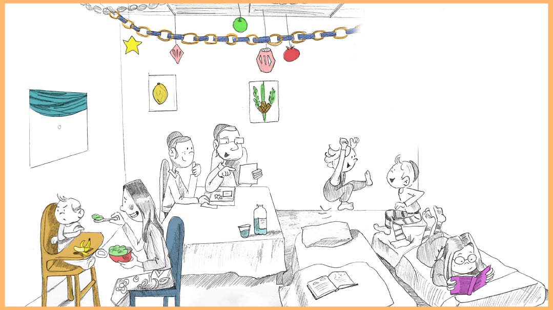 Before you leave, everyone needs to daven. So everyone davens. And says Hallel. And Mussaf. And hoshanas. Then you and all the davened kids wait for Tatty and the bochurim and your daughter Hadassah’s husband to return from shul, but they’re also davening, and saying Hallel and Mussaf and hoshanas. It’s Chol Hamoed, it’s a long davening. When will you be home? you text your husband. Everyone still needs to bentsh esrog before we leave.