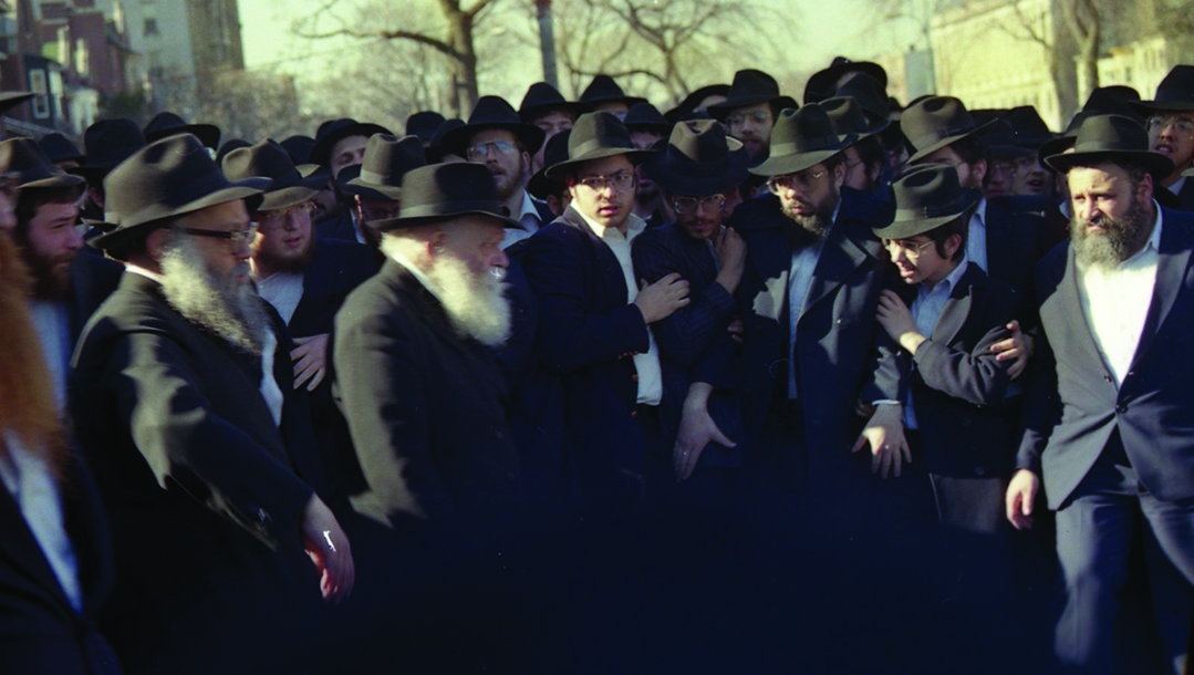 Together with the Rebbe at a funeral — Rabbi Jacobson is the bochur on the Rebbe’s left. “His words still guide me in moments of confusion”