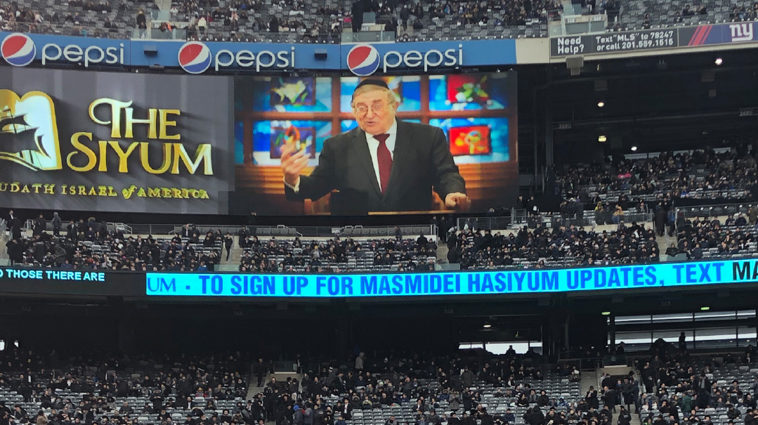 The maggid with a universal message. Addressing the crowds at a Siyum HaShas