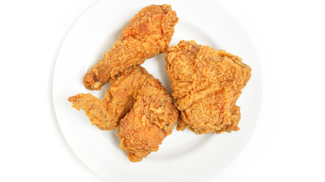 To make the breading: In a large ziplock bag, combine 2²⁄4 cups flour and spices. In a shallow bowl, beat eggs and water together. Dredge each piece in remaining ½ cup flour. Then, dip each piece of chicken into the egg mixture, and place a few pieces at a time into the spiced flour bag. Seal bag and shake to coat. Fry chicken, several pieces at a time, for 8–12 minutes or until golden brown and juices run clear. The internal temperature of the chicken should be 160°F (71°C) for white meat and 165°F (73°C) for dark meat. Drain on a wire rack, and let rest 3–5 minutes before serving. If desired, to add some sweetness to the fried chicken, make the honey-tahini drizzle sauce. Mix the ingredients, and drizzle over the chicken.