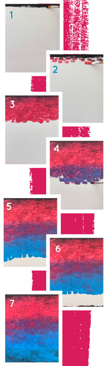5 Continue working down the canvas moving from the purple (pink/blue combo) to purely blue.
