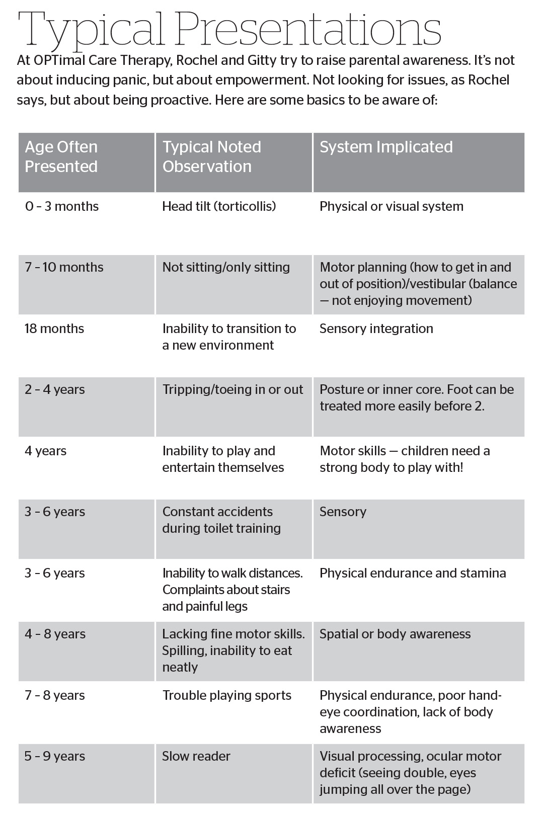 According to Rochel Feinstein PT, DPT, PCS, and Gitty Zelczer M.S., OTR/L, the duo behind OPTimal Care Therapy Center in Lakewood, New Jersey, my story is not as unique as I’d thought it was.