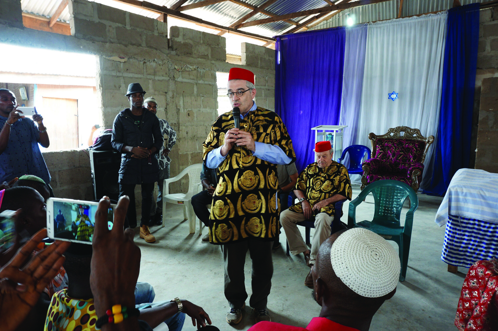 Then Hadassah handed us a fancy gold embroidered tunic and a red cap. “This is the costume of a chief,” she said. “We now make you an official Igbo chief.” We walked back to our car, followed by a hundred men singing “Am Yisrael Chai” and waving Israeli flags.