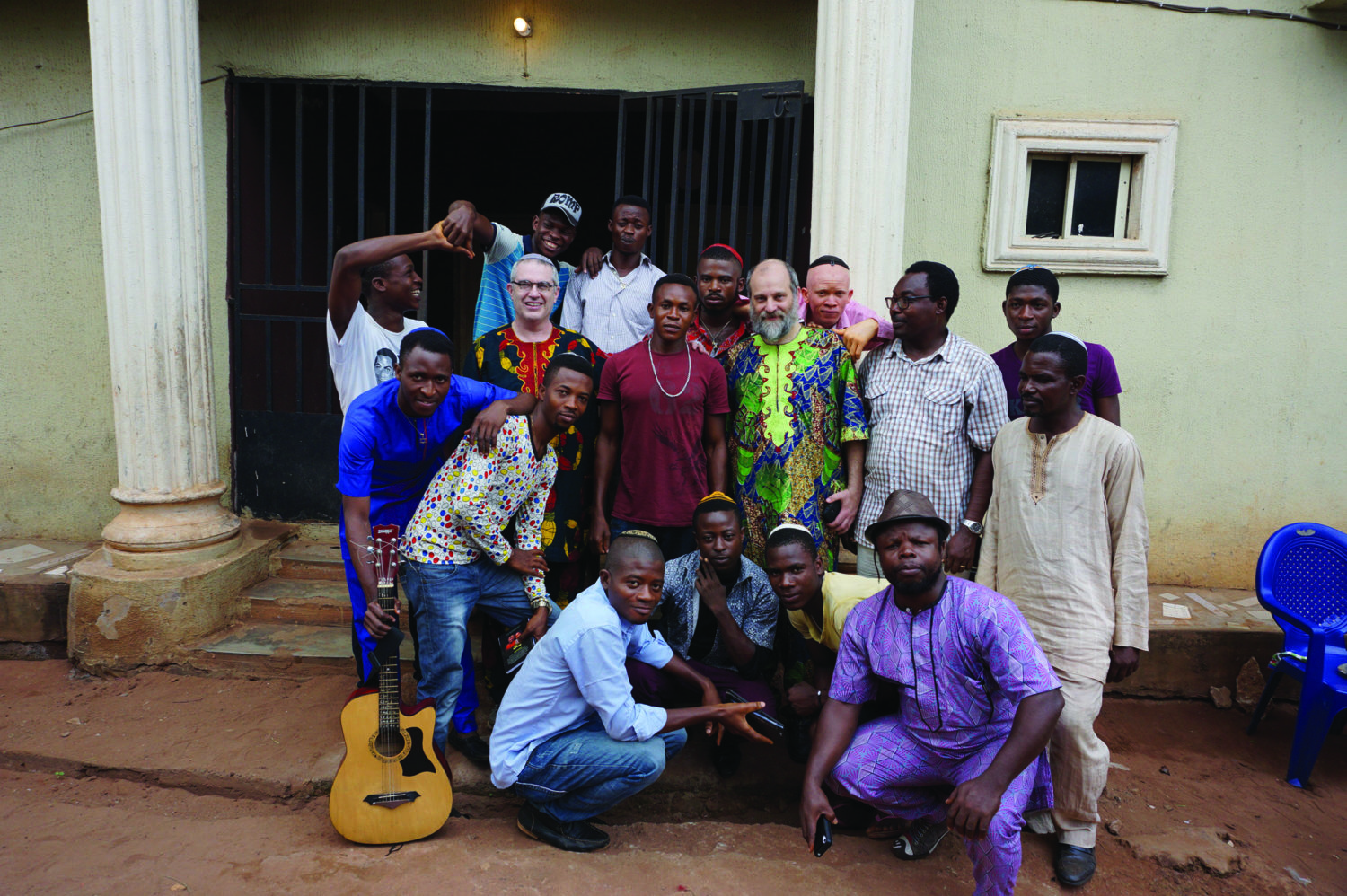 We were in Nigeria to teach, and wound up fielding an assortment of questions that surprised us. Despite their not being halachically Jewish, the Igbo Jews perceive themselves as such. Here we were, sitting around a dirt courtyard outside the Igbo Jewish Community Synagogue with chickens clucking and Israeli and Nigerian flags flying on the gate. Banana and coconut trees surrounded us and a group of 30 native Nigerians, who have been practicing Judaism for a few years, enveloped us.