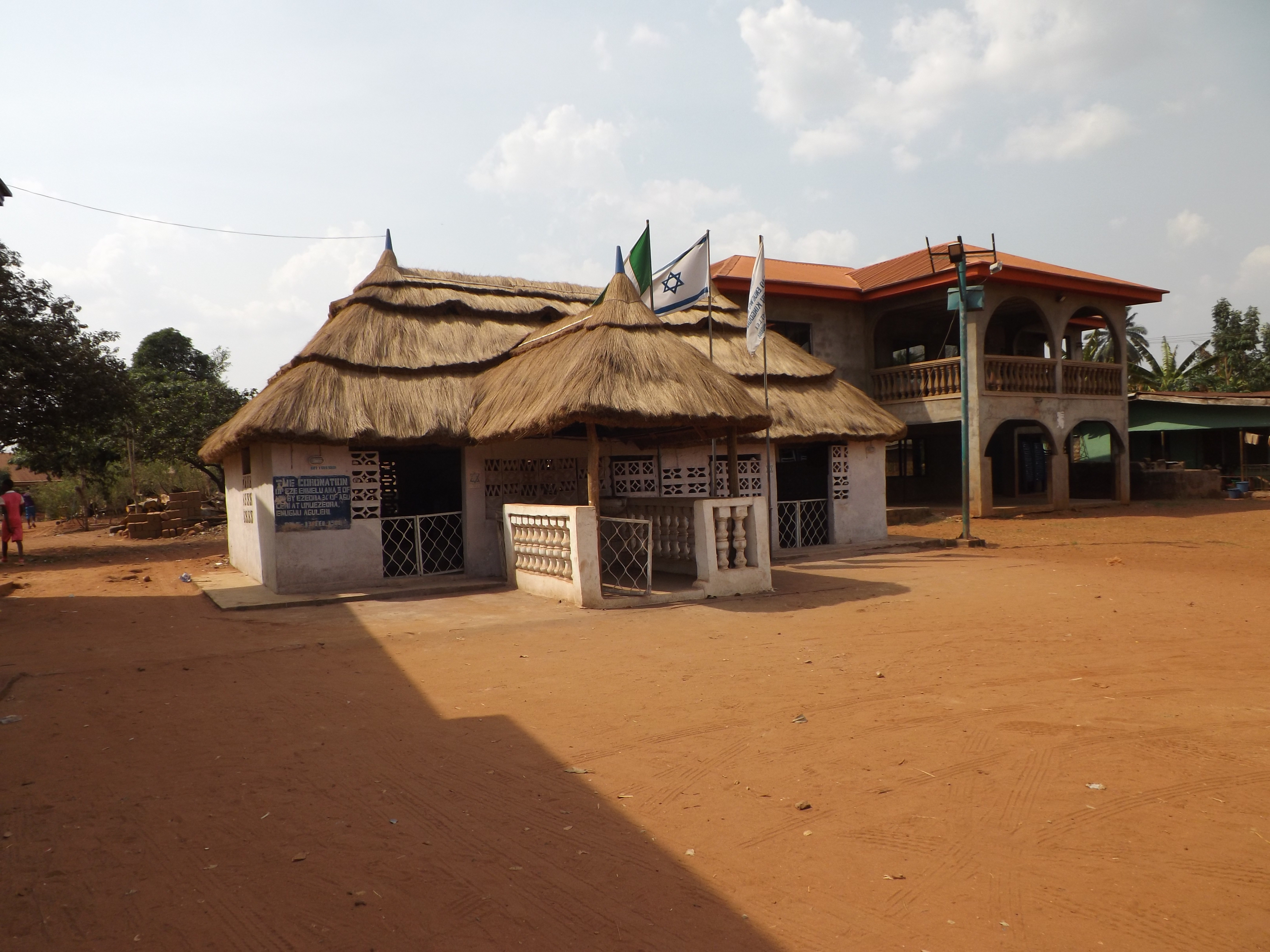 On Friday morning, we were invited to meet the king of the local Igbo. Arriving at his palace complex in Aguleri, where the Nigerian, Igbo, and Israeli flags were flying, we were brought to the throne room to await his entrance. It was resplendent, with a lion-skin throne and a life-size stuffed leopard with his teeth bared standing next to an ivory scepter. Pictures of the king and his coronation 40 years earlier adorned the walls. What surprised us the most were the numerous pictures that included rabbis and religious Jews. There was even one of the king wearing a tallis!