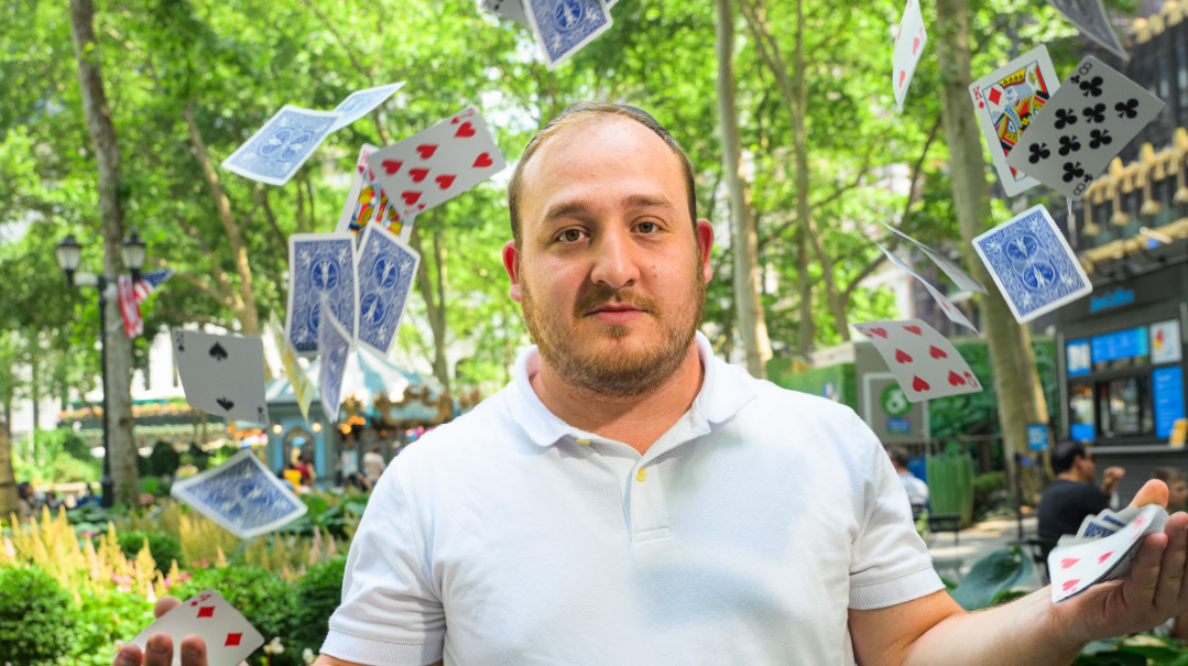 While Shlomo’s yeshivah had a no-cards rule, his rebbi was willing to look the other way. “I won’t say anything if you’ll show me a trick,” he said. In the end, his first gig was a performance at a Chanukah party hosted by his rebbi’s parents.